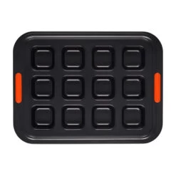 The 12-cup Brownie Pan is perfect for baking not only individual brownies, but all manner of sweet and savory mini treats from cupcakes, cornbread and muffins to egg frittatas and more. The square shape of the baking wells ensure that each piece is baked to uniform perfection and has both a crispy crust as well as a fudgy center. An innovative silicone coating provides easy release and effortless cleanup, while the heavy-gauge carbon steel construction delivers superior heat conduction and even baking. Lightweight and durable, the wide rims with heat-resistant silicone grips make it easy to transfer a full pan to and from a hot oven.