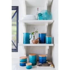 Offering maximum storage efficiency, this sleek, colorful 23-ounce canister comes with a tight-sealing beech wood lid that allows for easy stacking on the counter or in cabinets. An airtight silicone gasket and a hard-wearing enamel finish make this canister as functional as it is beautiful.