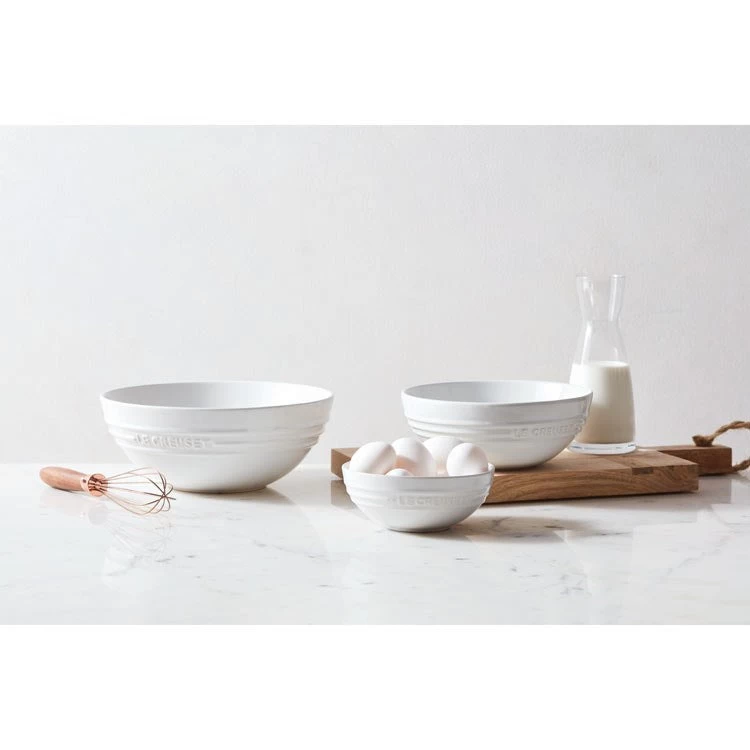 Le Creuset’s largest stoneware multi bowl lives up to its name. Use it for serving a green salad, for side dishes of vegetables or rice, or as a fruit bowl on the kitchen counter. It also works well as a mixing bowl for cake batter or cookie dough – the hard-wearing finish stands up to beaters and other tools.~~For culinary inspiration, explore Le Creuset recipes for delicious dishes to try with your new cookware.~~Learn more about the materials that make Le Creuset a trusted name in cookware along with a guide to proper care and usage.