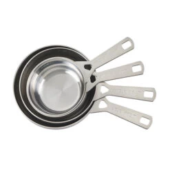 Le Creuset Batch Baking Measuring Cups are a kitchen essential for providing precise measurements while baking and cooking. The set features larger cup sizes that are ideal for baking projects, batch baking, meal prep and portioning food – they also have helpful interior capacity markings for smaller-sized measurements as well. A perfect addition to standard measuring cups, the set is firmly held together with a detachable ring and nest flatly for streamlined storage. They are crafted from heavy-gauge and durable stainless steel with a polished interior and brushed exterior finish that is easy to clean and dishwasher-safe.