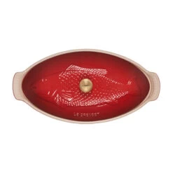 The Fish Baker features a covered oval baking dish embossed with an elegant fish motif and brushed gold knob. A striking presentation from oven to table, it’s perfect not only for baking, roasting, steaming, and broiling all manner of fish recipes – but also for roasting and steaming vegetables and meat, bubbling casseroles, one dish meals and more. The ridges on the bottom of the baking dish keep food elevated for even cooking and browning, while the stoneware lid locks in moisture and keeps fish odors contained. Crafted from the finest quality stoneware to ensure food is cooked to perfection, the dish features a colorful glaze that is virtually nonstick for easy cleanup.