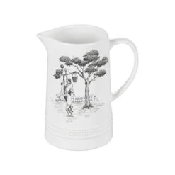 The Harlem Toile de Jouy Pitcher features the beloved toile pattern created by renowned interior designer Sheila Bridges. The pattern highlights exuberant vignettes of vibrant, everyday Black life in the pastoral motifs typical of toiles from the late 1700s – rendered in a crisp black appliqué, the pattern makes a striking statement on a landscape of Le Creuset White. The limited-edition collection pays homage to a vibrant culture and rich design tradition and is intended to pair effortlessly with any Le Creuset color palette. Set the table for self-expression and claim a bold piece of design history with the Le Creuset x Sheila Bridges Collection.