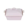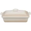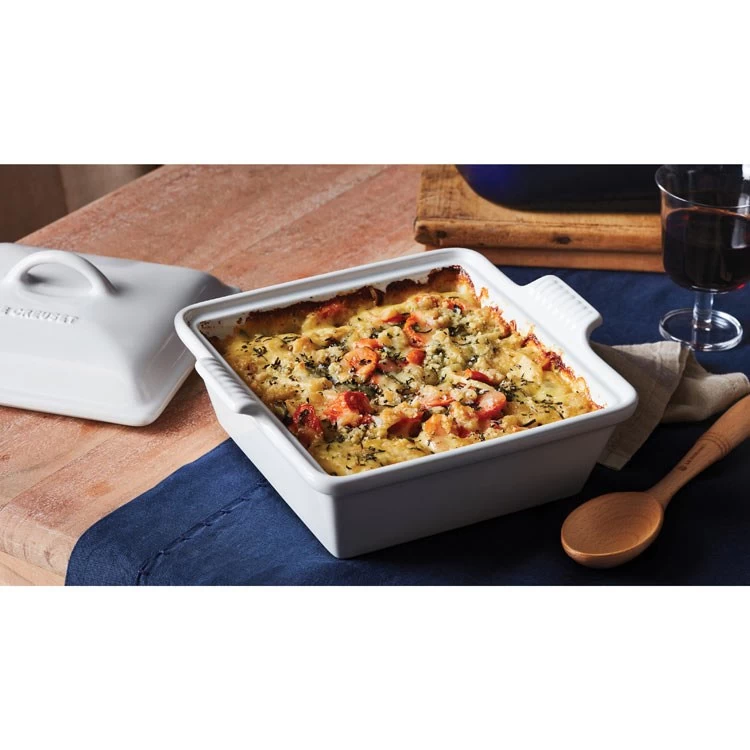 Le Creuset stoneware casseroles offer superior, highly functional performance in the oven and at the table. These durable stoneware dishes include tight-fitting lids and easy-to-grip grooved side handles, and are designed for a multitude of kitchen tasks, whether baking desserts, oven-roasting meats, broiling fish, or simply marinating before cooking.