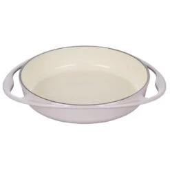 Named for this famous French upside-down apple tart, the enameled cast iron Tart Tatin is a capable alternative for a variety of recipes like pizza and quiche when used in place of a conventional pie dish.