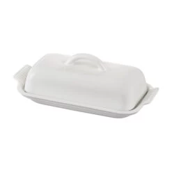 Decorative yet functional, the Heritage Butter Dish is perfectly sized to hold a single stick of butter, yet is wide enough to hold most European style sticks as well. Crafted from the finest quality stoneware in our iconic colors, the butter dish can go from refrigerator to microwave to table and is finished with a vibrant glaze which is easy to clean, dishwasher-safe, and resistant to chips, scratches and stains.