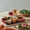 Le Creuset Nonstick Stainless Steel Fry Pans feature a refined performance-driven design ideal for everything from searing fish to sauteing vegetables and making omelets. Radiant and durable, the triple layer construction features a full base-to-rim aluminum core for superior heat distribution, while the lightweight titanium-infused stainless steel exterior resists scorching and corrosion. The triple-reinforced nonstick interior is ideal for browning and searing, with or without oil, and easily wipes clean.Â