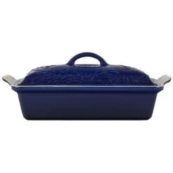 Inspired by the sun-drenched fields of Provence, the Olive Branch Heritage Rectangular Casserole baking dish is embossed with a refined olive branch motif that is a sophisticated addition to any kitchen or table. Both functional and beautiful, it’s perfect for indulgent desserts, comforting casseroles, marinating meats, broiling fish, and more. Not only does the stoneware lid lock in moisture and heat while baking, but makes it easy to carry dishes to potlucks and picnics or for storing leftovers – or bring it straight from the oven to the table as an elegant serving piece. Crafted from the finest quality stoneware to ensure food is cooked to perfection, the baking dish features a colorful glaze that is virtually nonstick for easy cleanup.