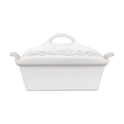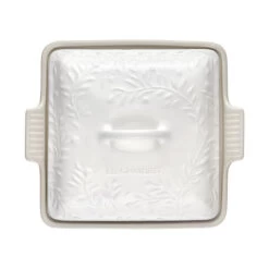 Inspired by the sun-drenched fields of Provence, the Olive Branch Heritage Square Casserole baking dish is embossed with a refined olive branch motif that is a sophisticated addition to any kitchen or table. Both functional and beautiful, it’s perfect for indulgent desserts, comforting casseroles, marinating meats, broiling fish and more. Not only does the stoneware lid lock in moisture and heat while baking, but makes it easy to carry dishes to potlucks and picnics or for storing leftovers– or bring it straight from the oven to the table as an elegant serving piece. Crafted from the finest quality stoneware to ensure food is cooked to perfection, the baking dish features a colorful glaze that is virtually nonstick for easy cleanup.