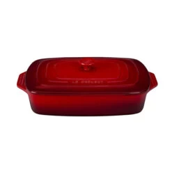The redesigned handles of the 3 1/2 qt. rectangular casserole are easy to grip, making it a convenient choice for baking, carrying and serving. Straight sides support even slicing for layered dishes, like lasagna.