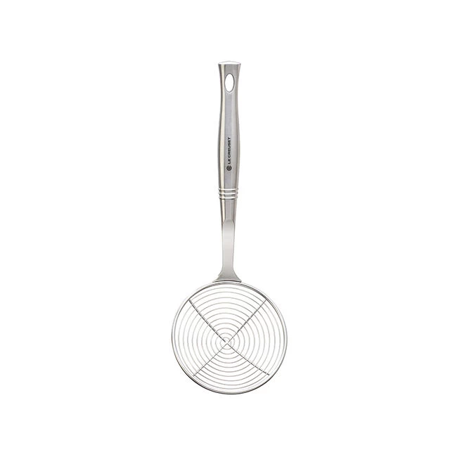 The Revolution Wire Skimmer provides quick and efficient drainage when straining foods out of liquids or for more delicate foods. Crafted from premium radiant stainless steel, the wire skimmer delivers superior comfort and control with a patented elliptical handle that won’t twist in hand. Dishwasher-safe and durable, Le Creuset Revolution tools are engineered for a lifetime of optimal performance.