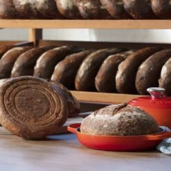 - Low-profile base has raised ridges for even browning and marks the loaf with the Le Creuset three rings
