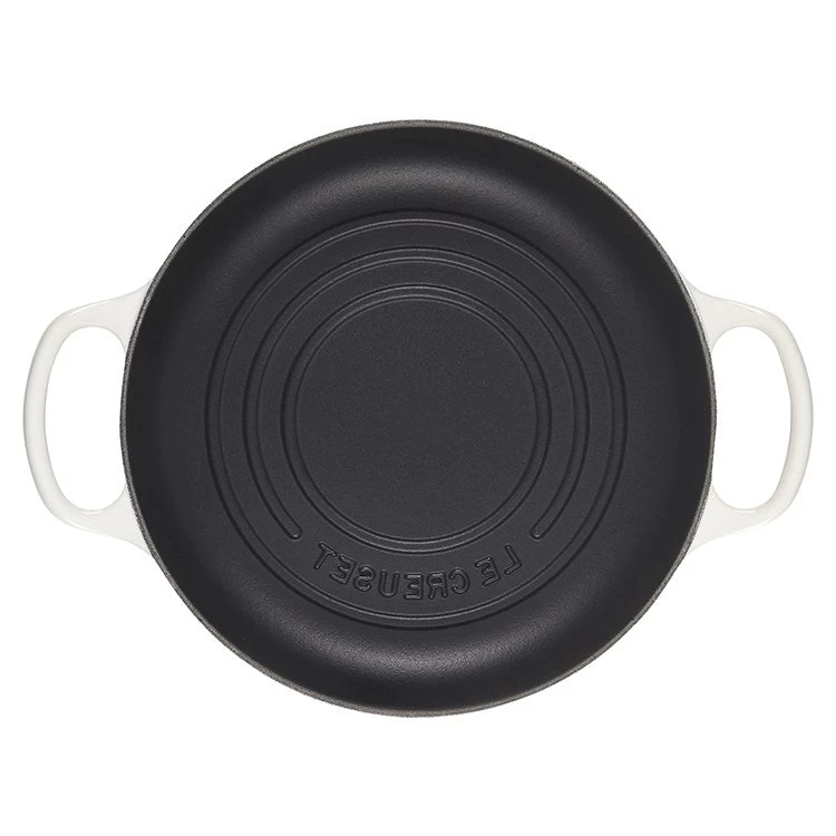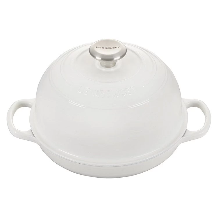 - Low-profile base has raised ridges for even browning and marks the loaf with the Le Creuset three rings