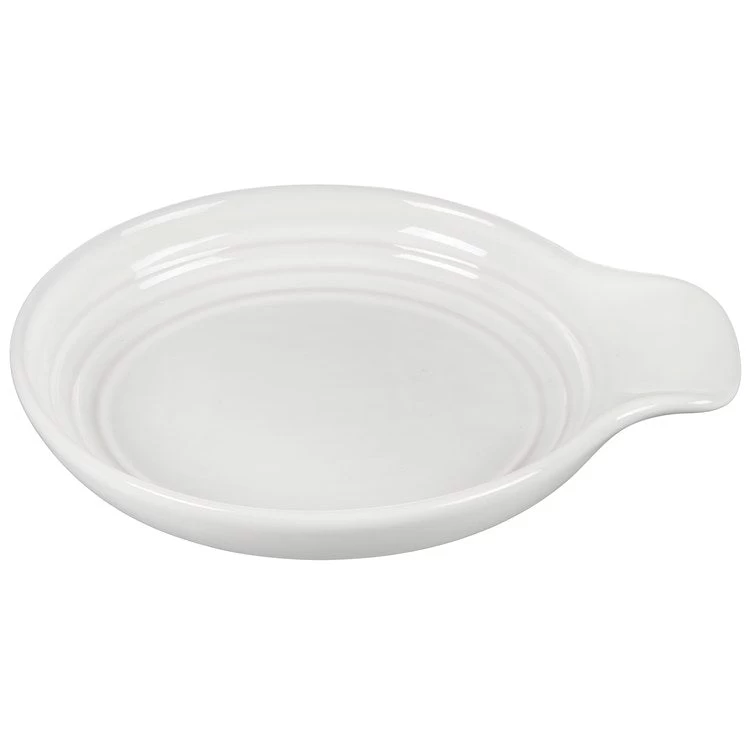 Whether you’re stirring sauces as they simmer or serving plates at the table, the stoneware spoon rest is a decorative and convenient way to keep tablecloths and countertops clean when setting down utensils. Its specially grooved handle rest keeps spoons, spatulas, and ladles from sliding, while the wide bowl contains any food still left on utensils. ~~For culinary inspiration, explore Le Creuset recipes for delicious dishes to try with your new cookware.~~Learn more about the materials that make Le Creuset a trusted name in cookware along with a guide to proper care and usage.