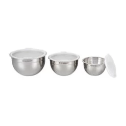 Stainless Steel Mixing Bowls are an essential in the kitchen for everything from prepping ingredients to mixing batters and storing leftovers. The slip-resistant bottom ensures a stable base, while the accompanying lids provide an airtight seal. Designed to nest inside each other for easy storage, durable stainless steel is easy to clean and doesn’t absorb odors or flavors.