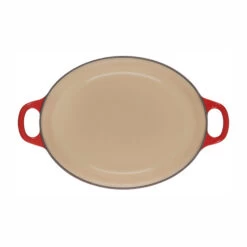 - Sand-colored interior enamel has a smooth finish that promotes caramelization, prevents sticking and resists stains