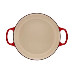 - Light colored smooth interior enamel allows easy monitoring of cooking progress